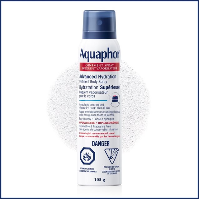 L’onguent en vaporisateur pour le corps Eucerin Aquaphor est une innovation révolutionnaire qui soulage immédiatement la peau sèche et rugueuse. Il se vaporise en jet continu, même à l’envers, ce qui vous permet de l’appliquer facilement sur le dos, les bras et les jambes.