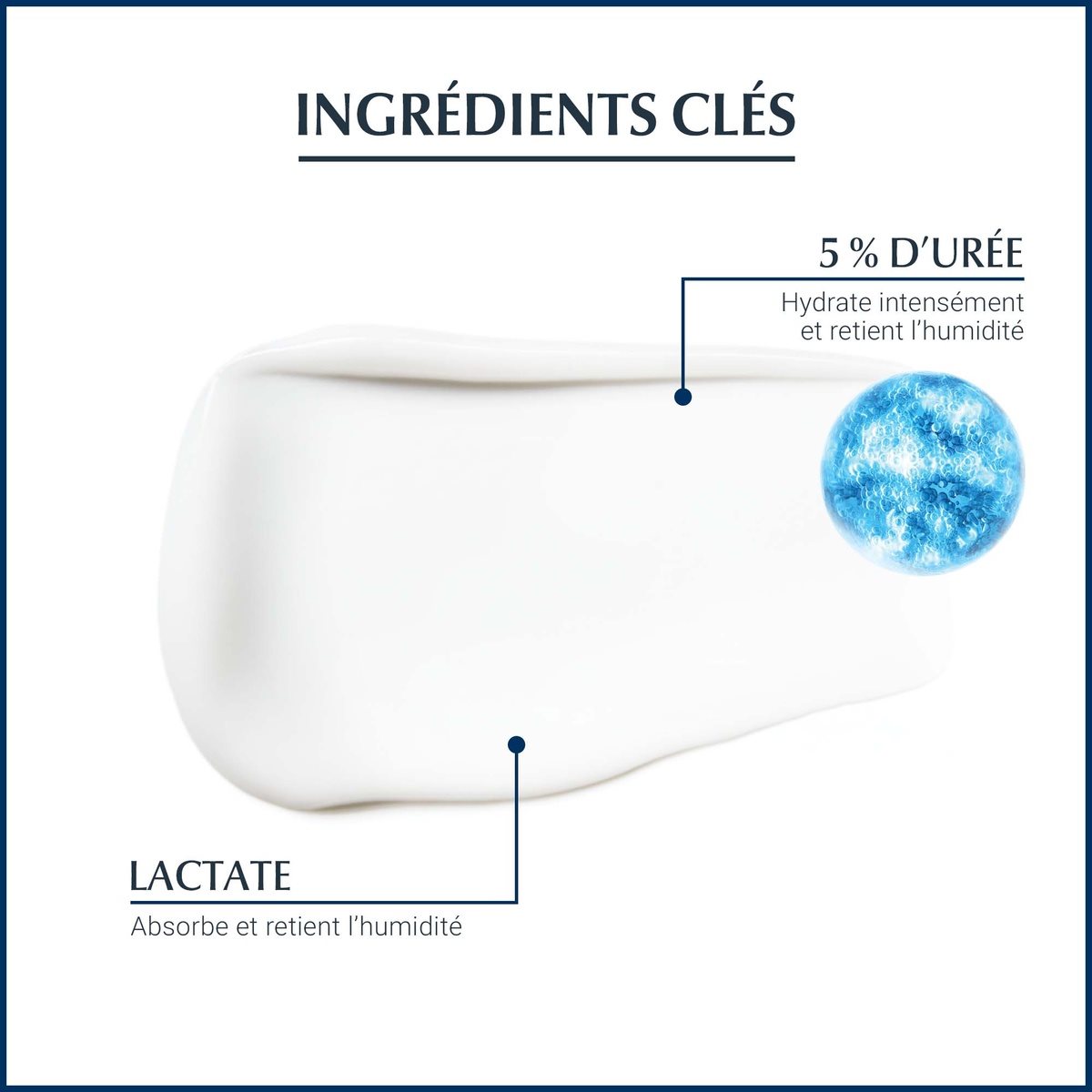L'urée est une des substances produites naturellement par la peau appelées « facteurs d'hydratation naturels » (FHN). L'urée est hygroscopique, elle retient l'eau dans la couche supérieure de la peau, la couche cornée. L'urée est aussi kératolitique, ce qui signifie qu'elle brise les liens entre les cellules de peau morte, améliorant ainsi la desquamation des cellules et, par conséquent, lissant la surface de la peau.